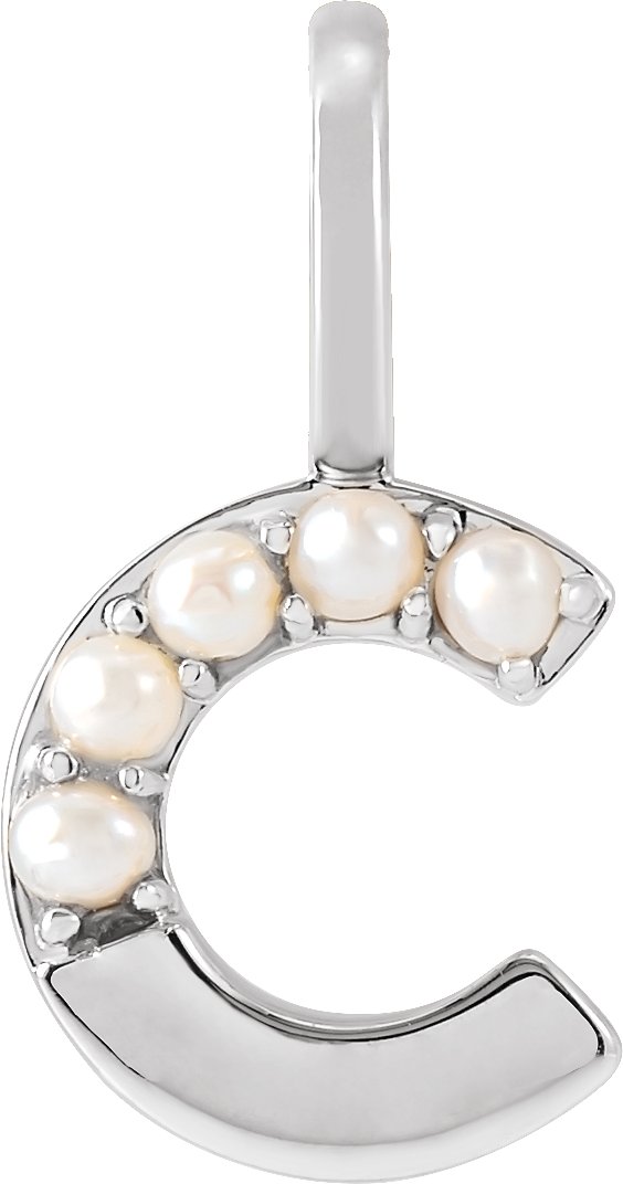 14K White Cultured White Pearl Initial C Charm or Pendant Ref 18479249