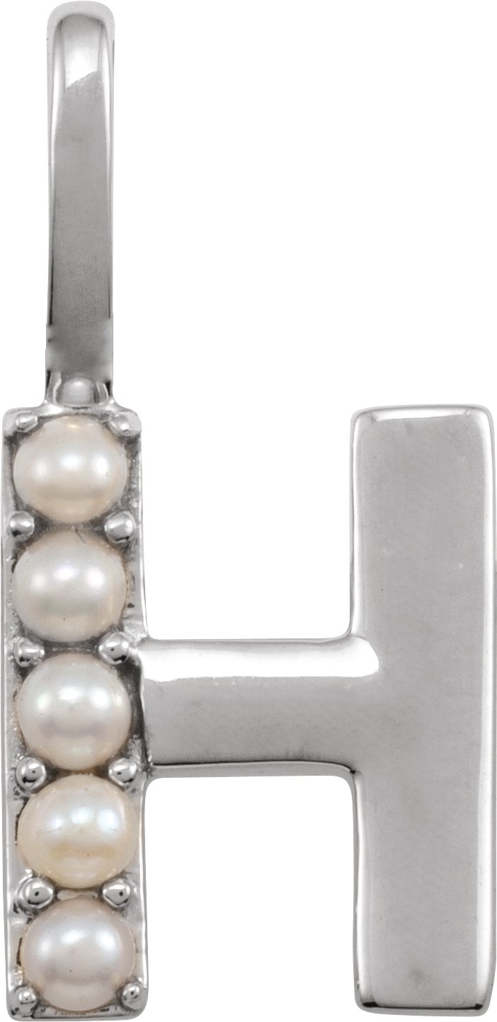 14K White Cultured White Pearl Initial H Charm or Pendant Ref 18479264