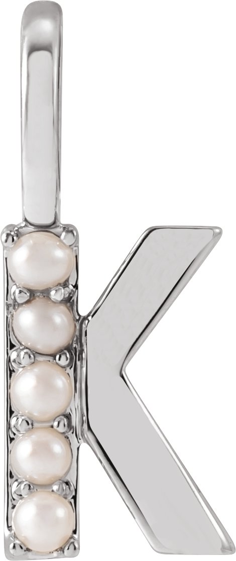 14K White Cultured White Pearl Initial K Charm or Pendant Ref 18479273