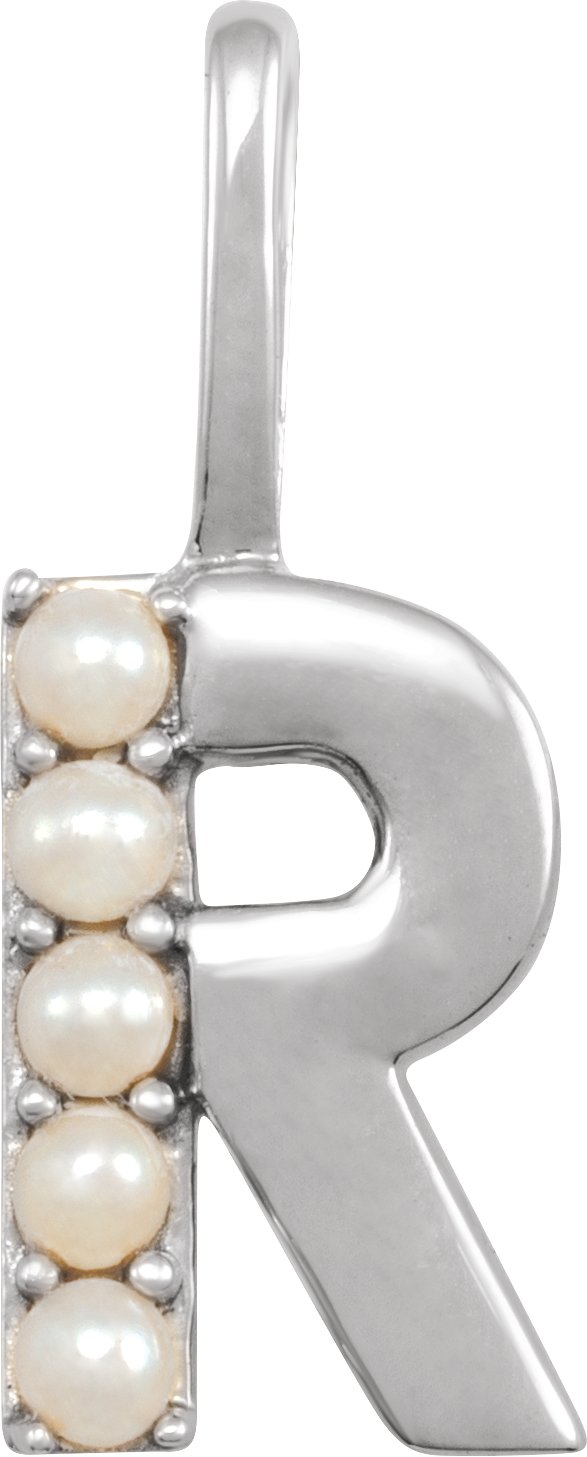 14K White Cultured White Pearl Initial R Charm or Pendant Ref 18479294