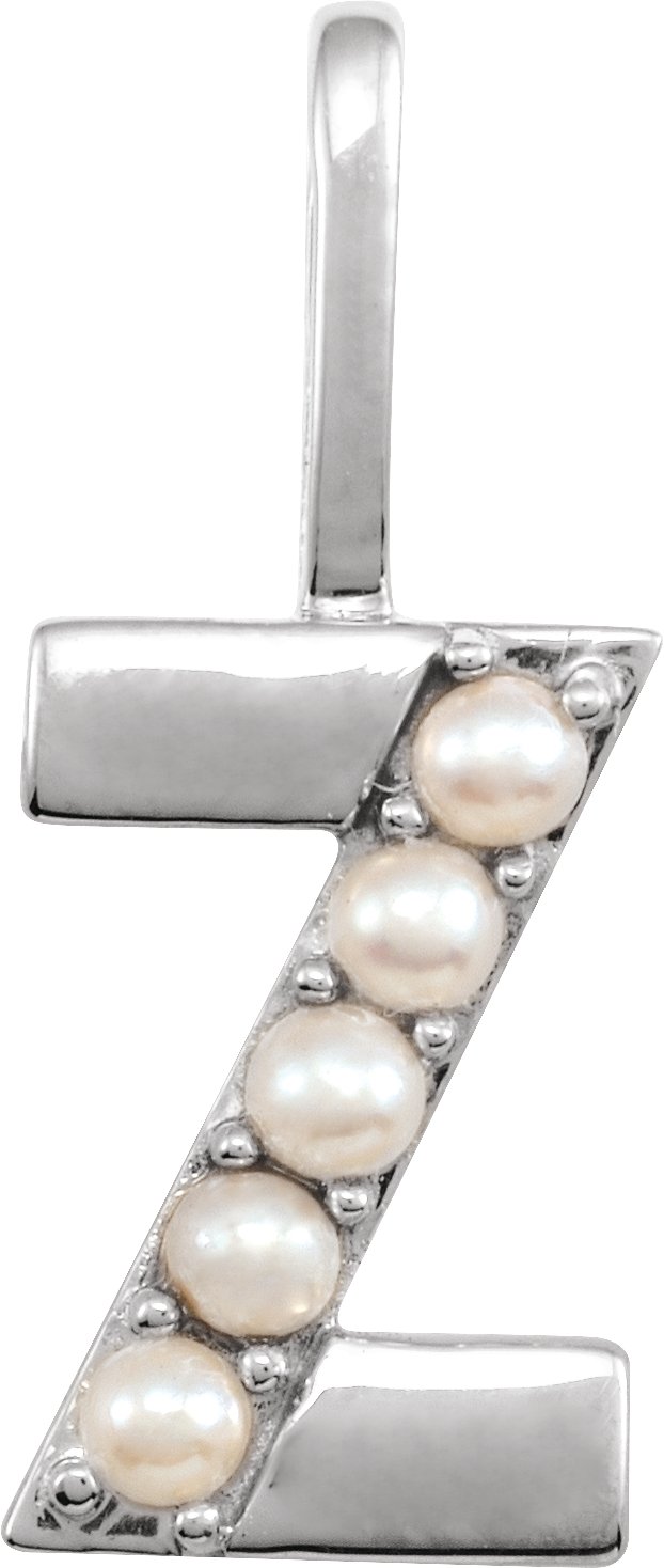 14K White Cultured White Pearl Initial Z Charm or Pendant Ref 18479318