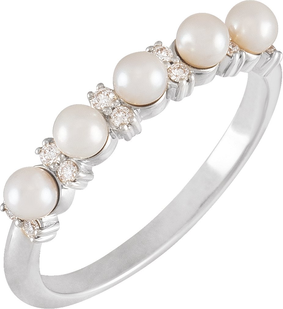 14K White Cultured White Seed Pearl and 0.10 CTW Natural Diamond Anniversary Band Ref 19335070