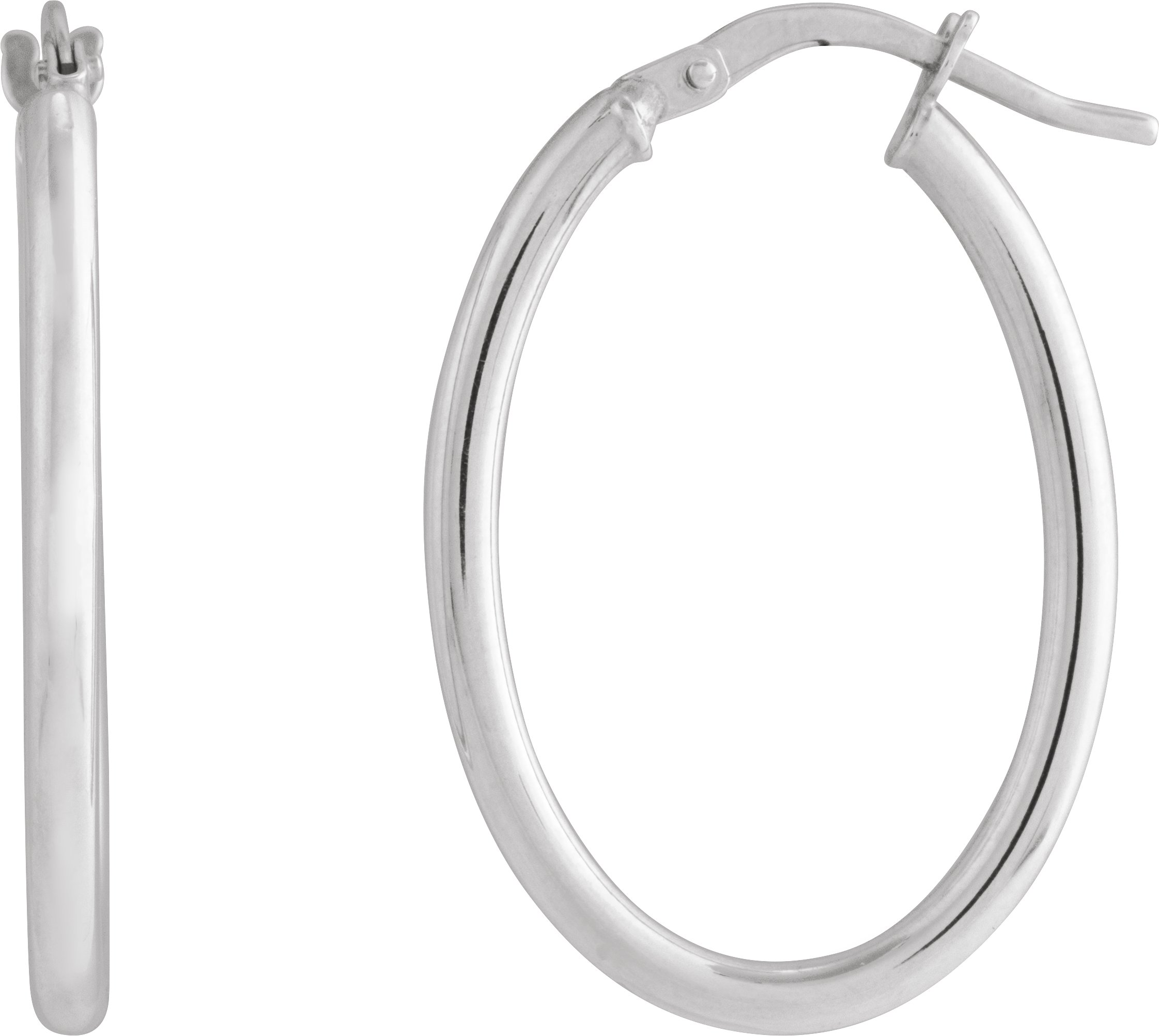 14K White Elongated Oval Tube 28 mm Hoop Earrings