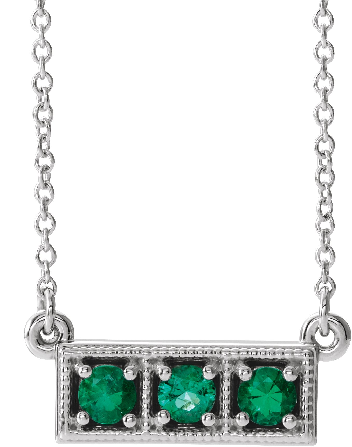 14K White Emerald Three Stone Granulated Bar 16 18" Necklace Ref. 14204225
