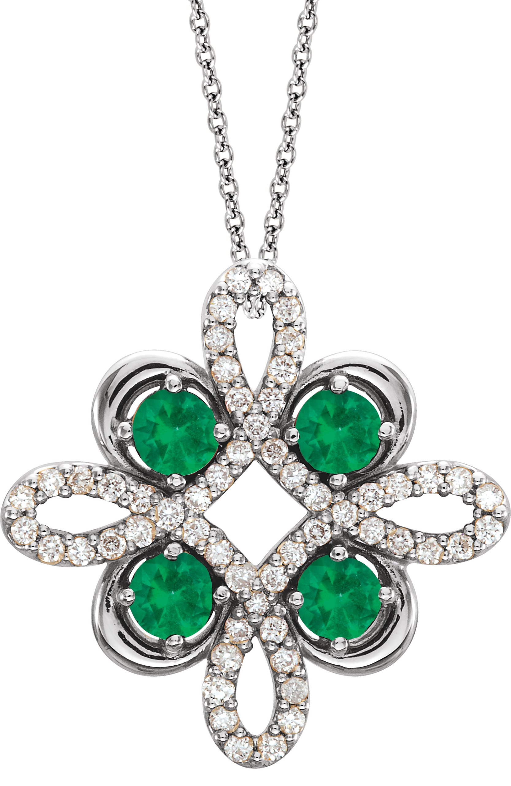 14K White Emerald and .17 CTW Diamond Clover 18 inch Necklace