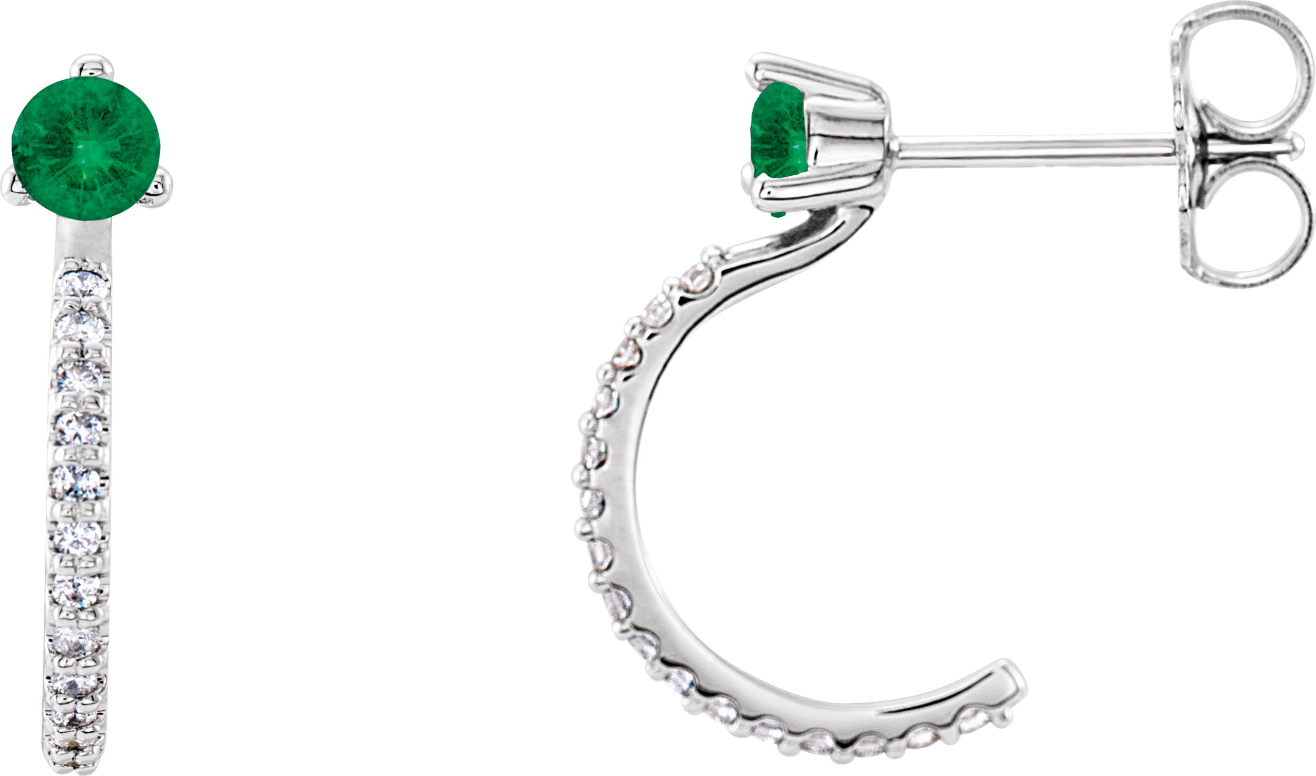14K White Emerald and .17 CTW Diamond Hoop Earrings
