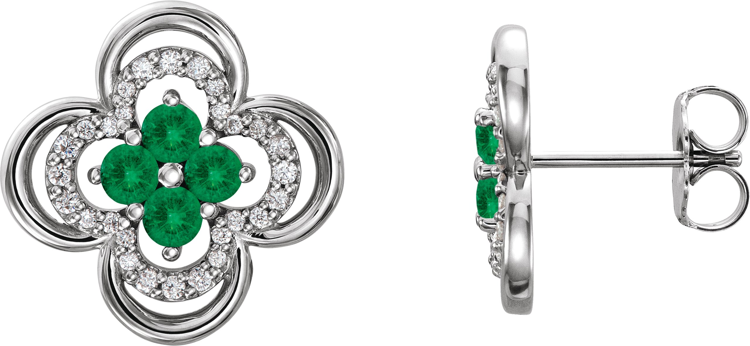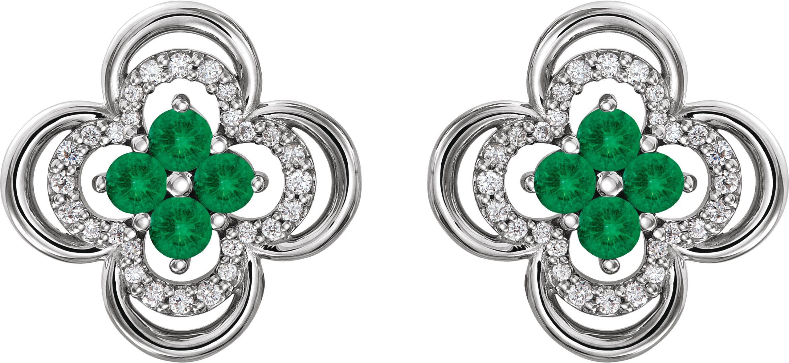 14K White Emerald & 1/5 CTW Diamond Clover Earrings
