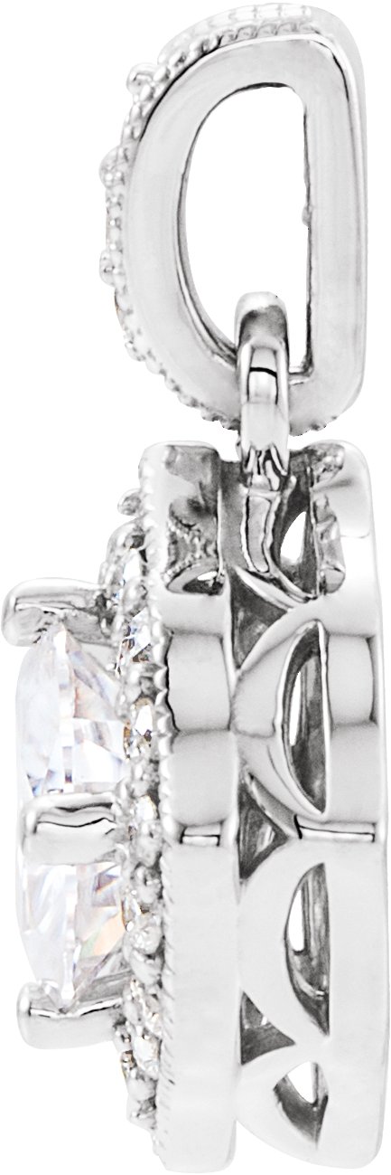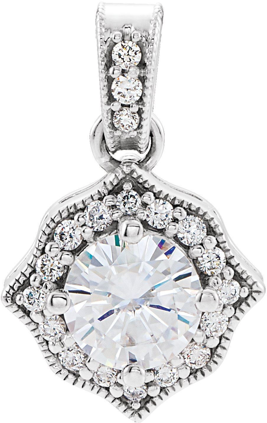 14K White Forever One™ Moissanite & 1/6 CTW Diamond Pendant