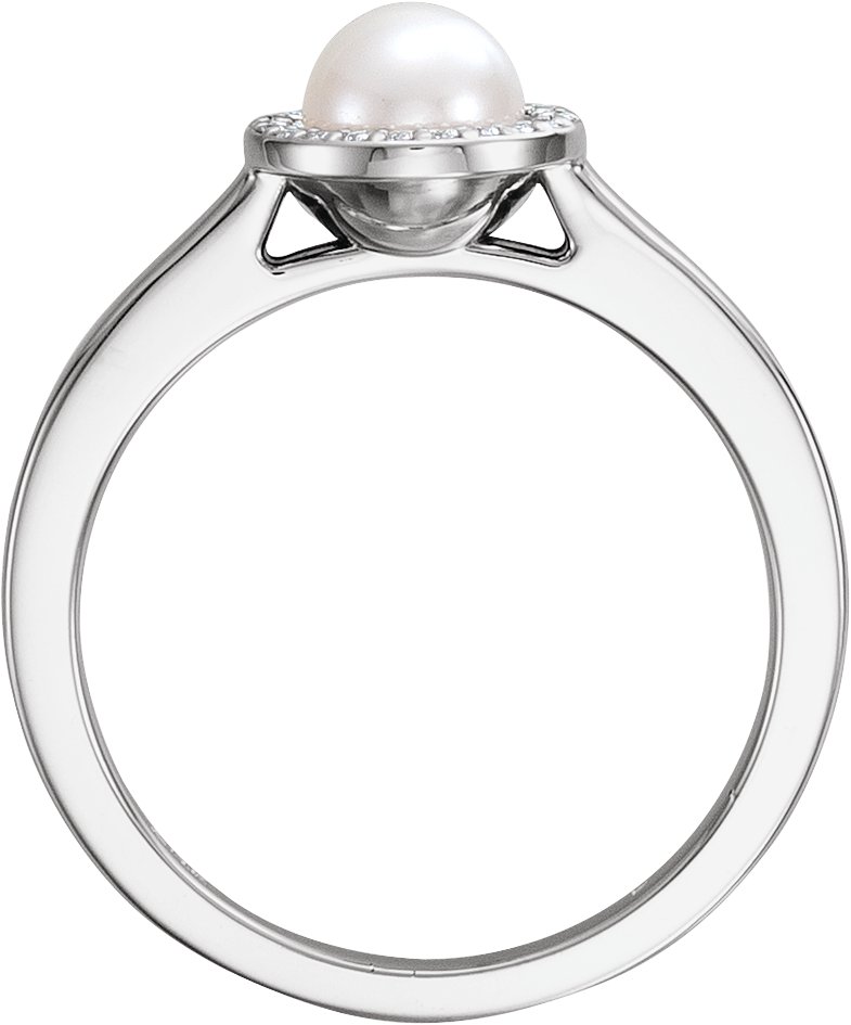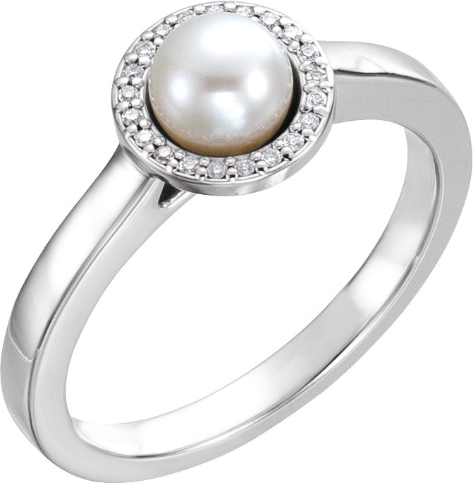 14K White Freshwater Cultured Pearl & .05 CTW Diamond Halo Style Ring