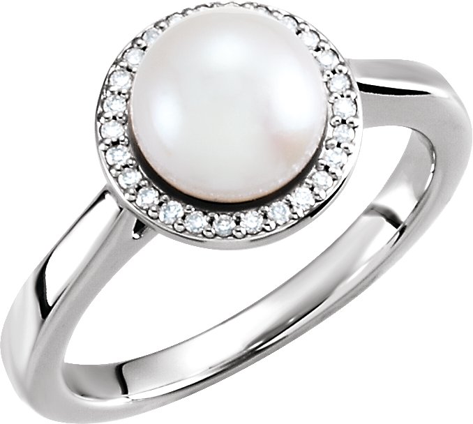 14K White Freshwater Cultured Pearl & .07 CTW Diamond Halo Style Ring