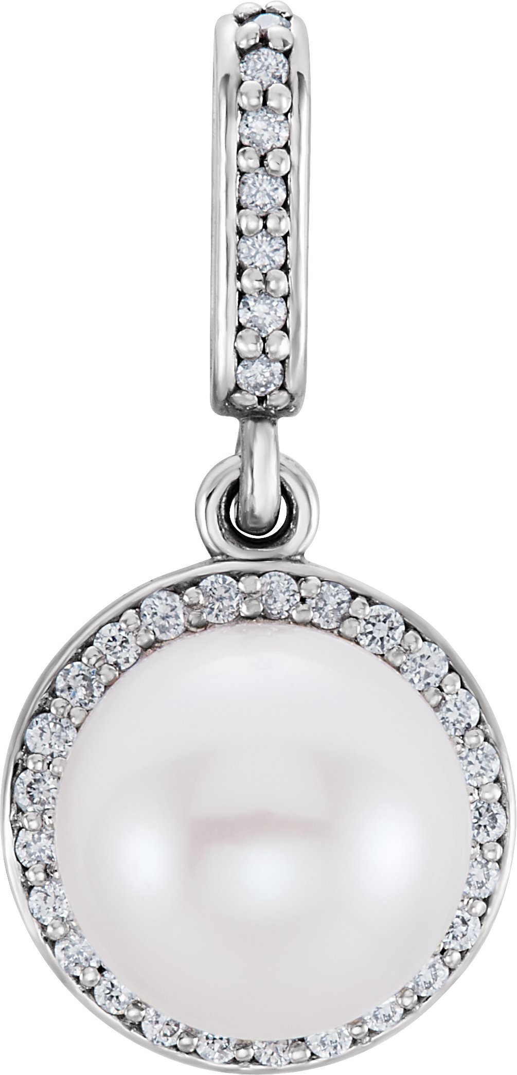 14K White Freshwater Cultured Pearl & 1/8 CTW Diamond Pendant