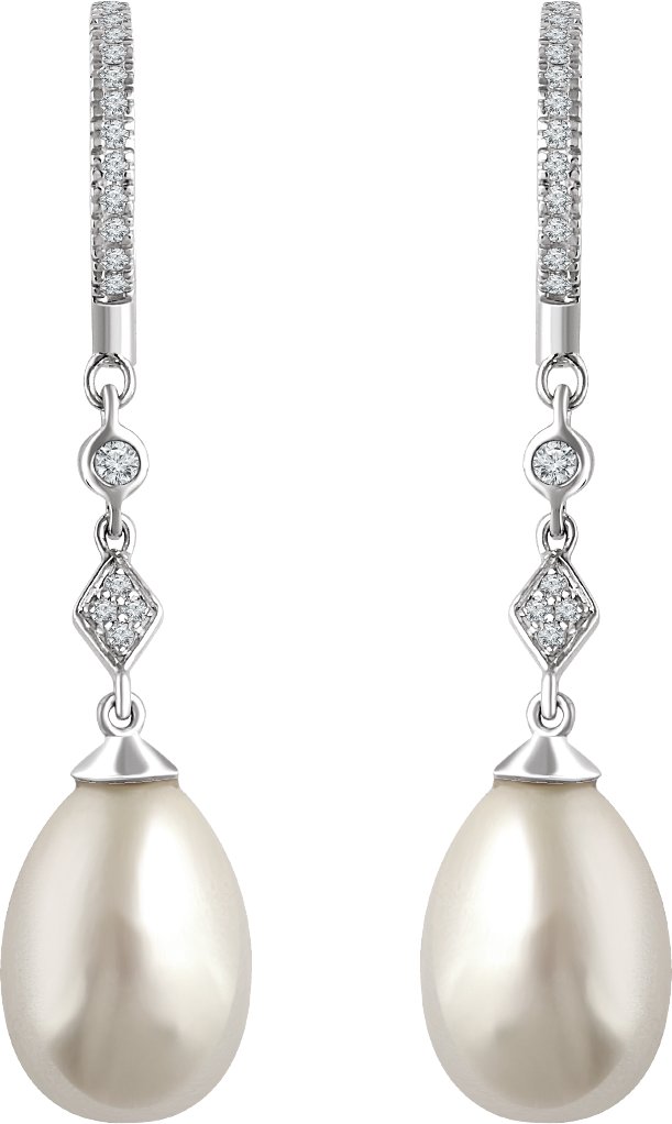 14K White Freshwater Cultured Pearl & 1/6 CTW Diamond Earrings