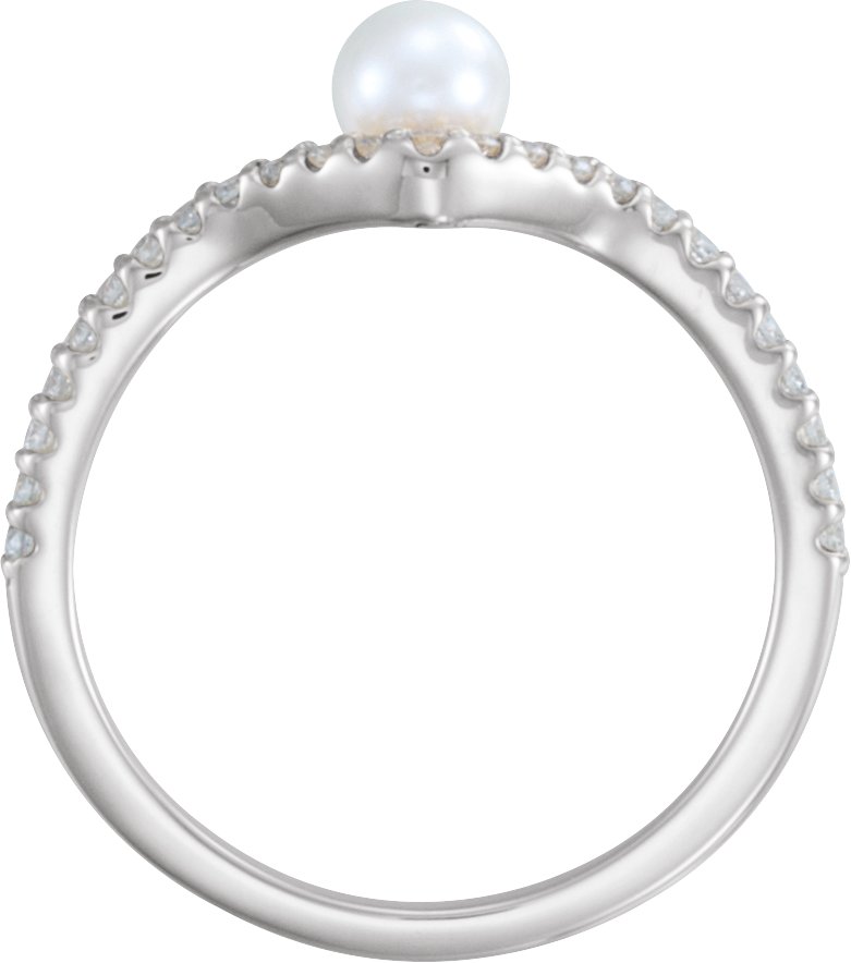 14K White Freshwater Cultured Pearl & 1/5 CTW Diamond Asymmetrical Ring