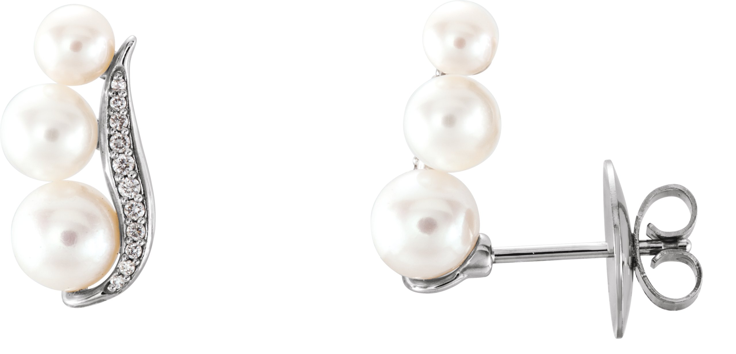 14K White Freshwater Pearl & 1/10 CTW Diamond Ear Climbers