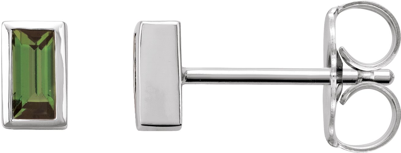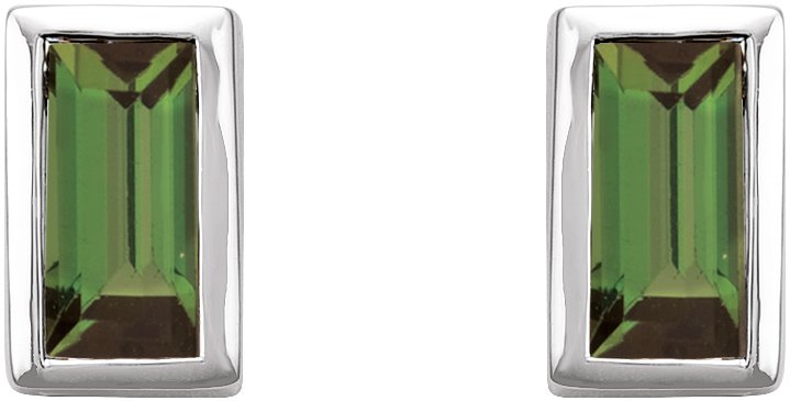 14K White Green Tourmaline Bezel Set Earrings Ref 17988135