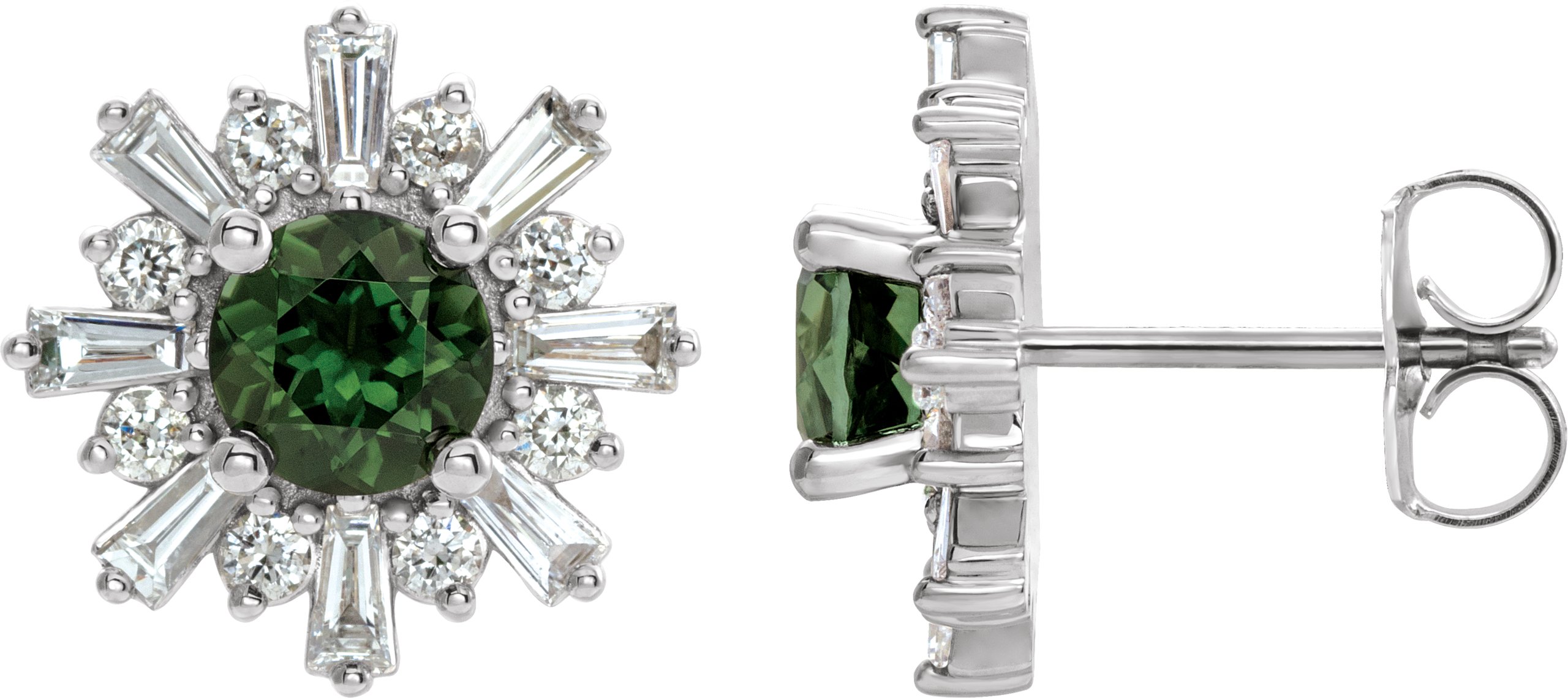 14K White Green Tourmaline & 3/4 CTW Diamond Earrings