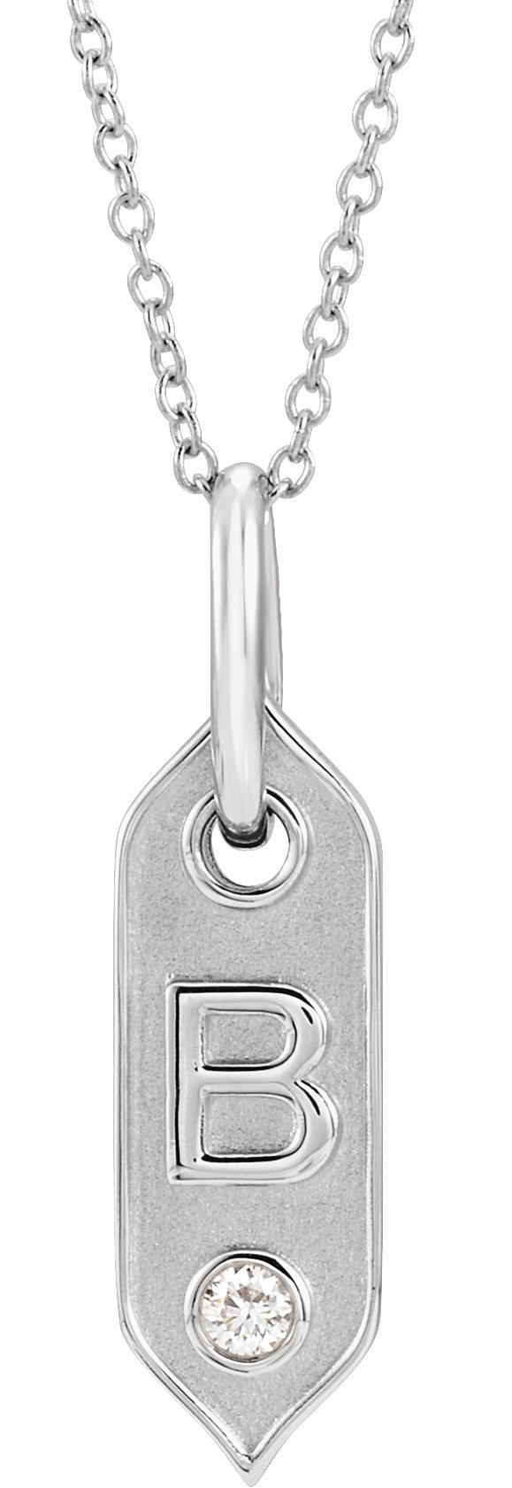 14K White Initial B .05 CT Diamond 16-18" Necklace