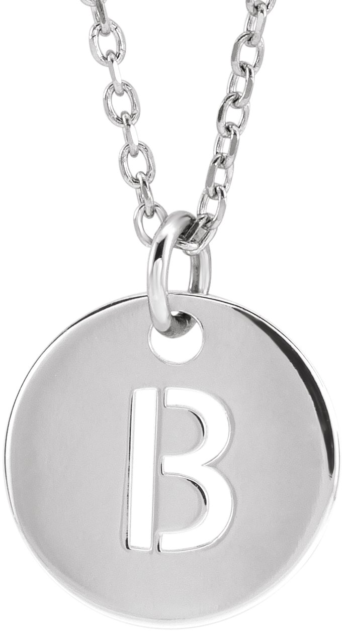 14K White Initial B 10 mm Disc 16 18" Necklace Ref. 16680359