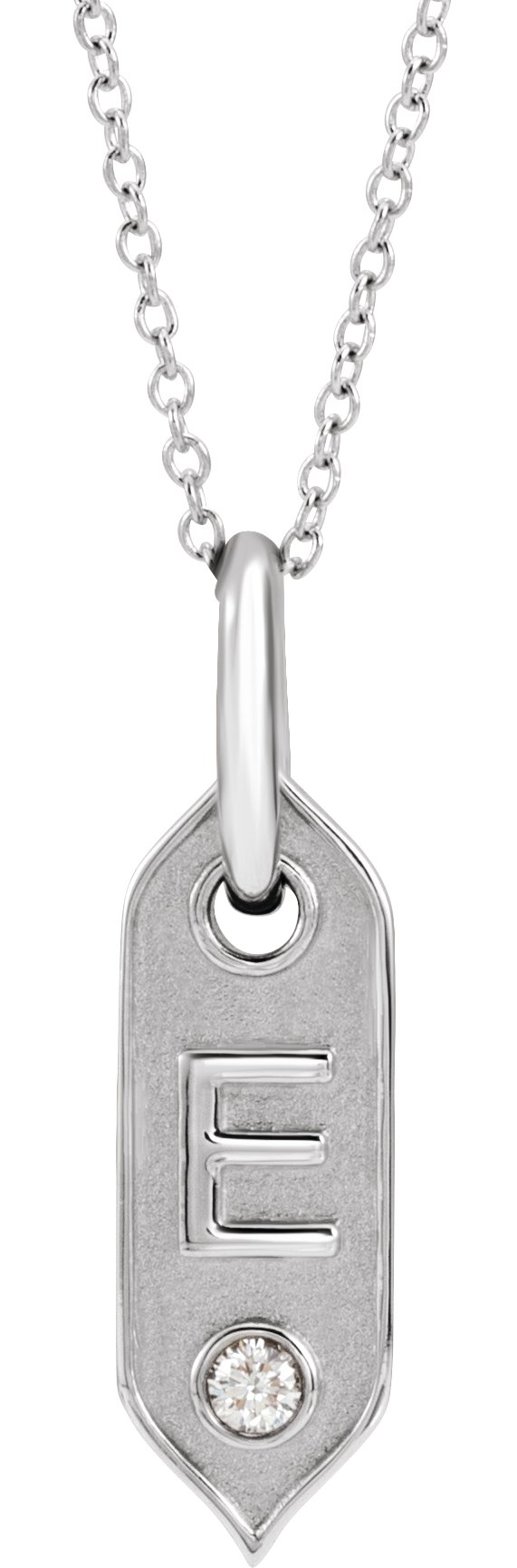 14K White Initial E .05 CT Diamond 16-18" Necklace