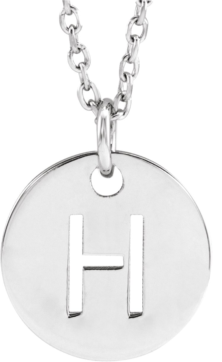14K White Initial H 10 mm Disc 16 18" Necklace Ref. 16680383