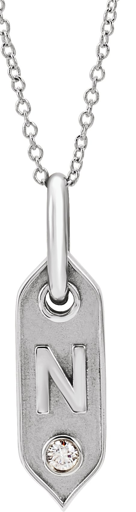 14K White Initial N .05 CT Diamond 16-18" Necklace