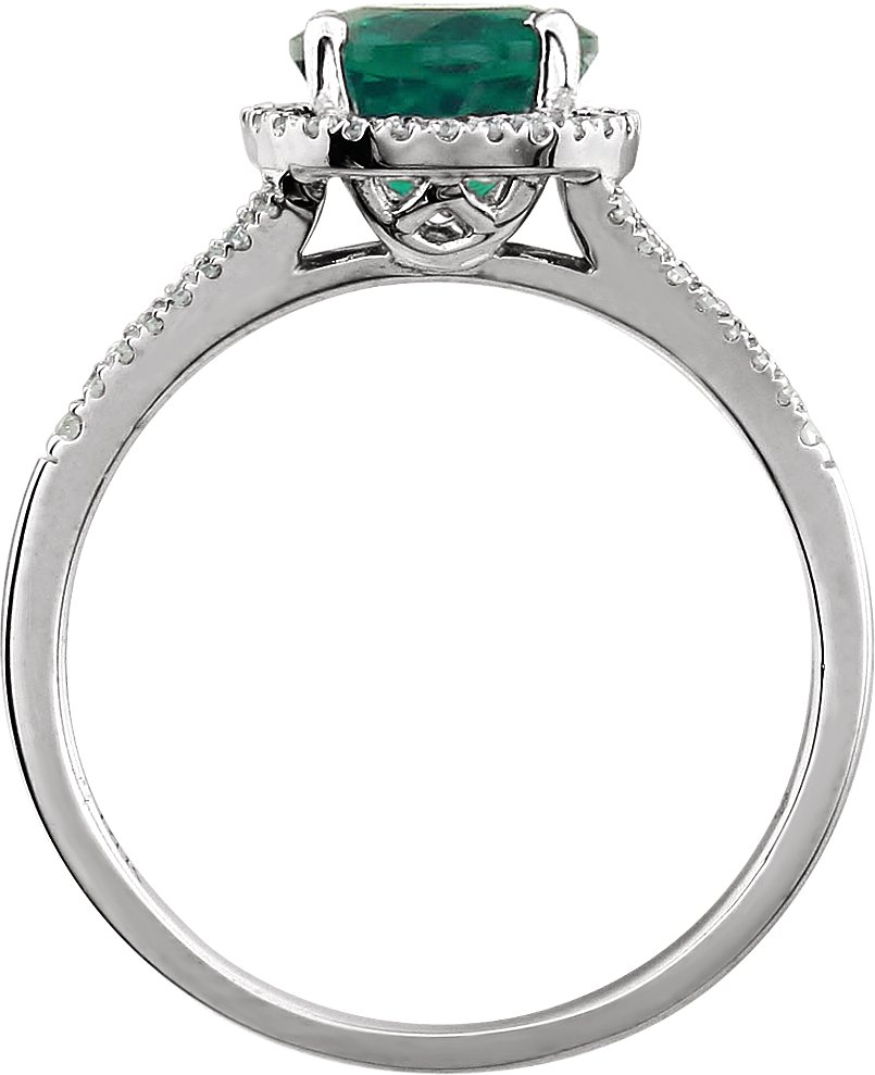 14K White Lab Created Emerald & 1/6 CTW Diamond Ring