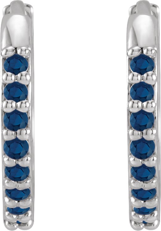 Description: Lab-Grown Blue Sapphire Hinged Hoop Earrings