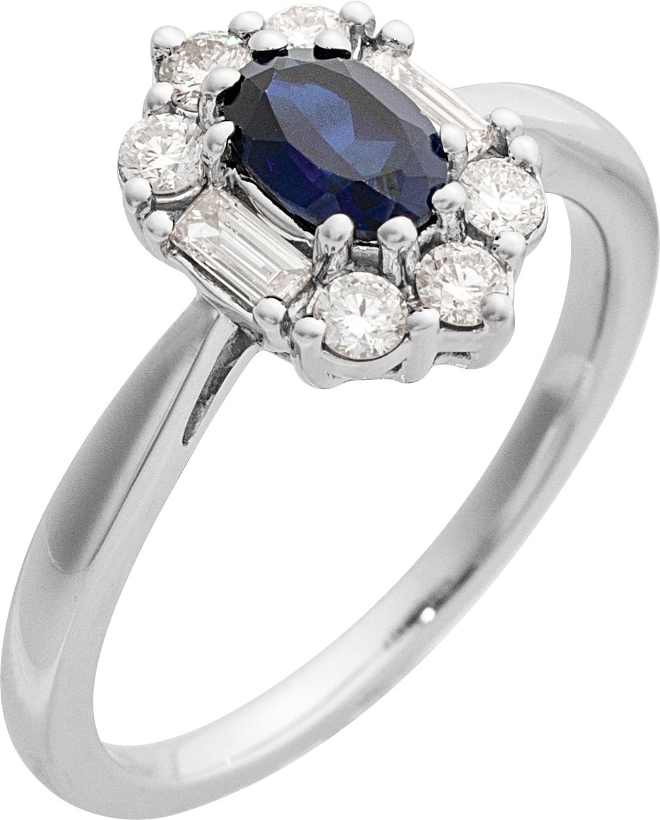 14K White Lab-Grown Blue Sapphire & 3/8 CTW Natural Diamond Ring