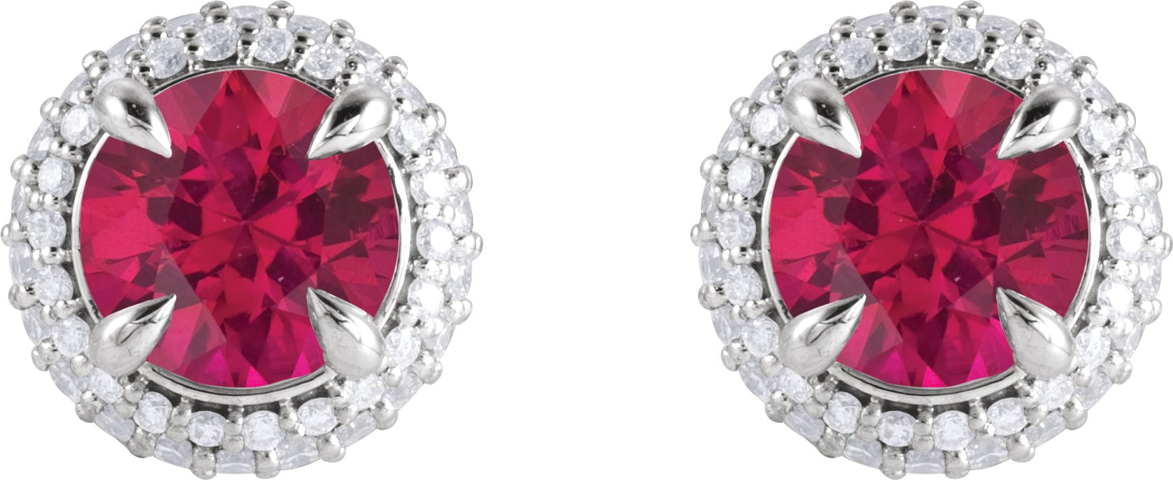 Description: Lab-Grown Ruby And 1/2 CTW Lab-Grown Diamond 4-Claw Prong Pre-Notched Double Halo-Style Earrings