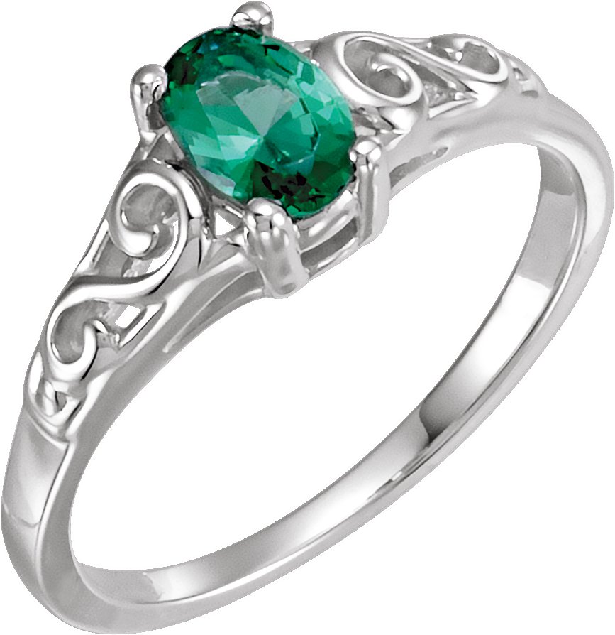 14K White May Youth Imitation Birthstone Ring