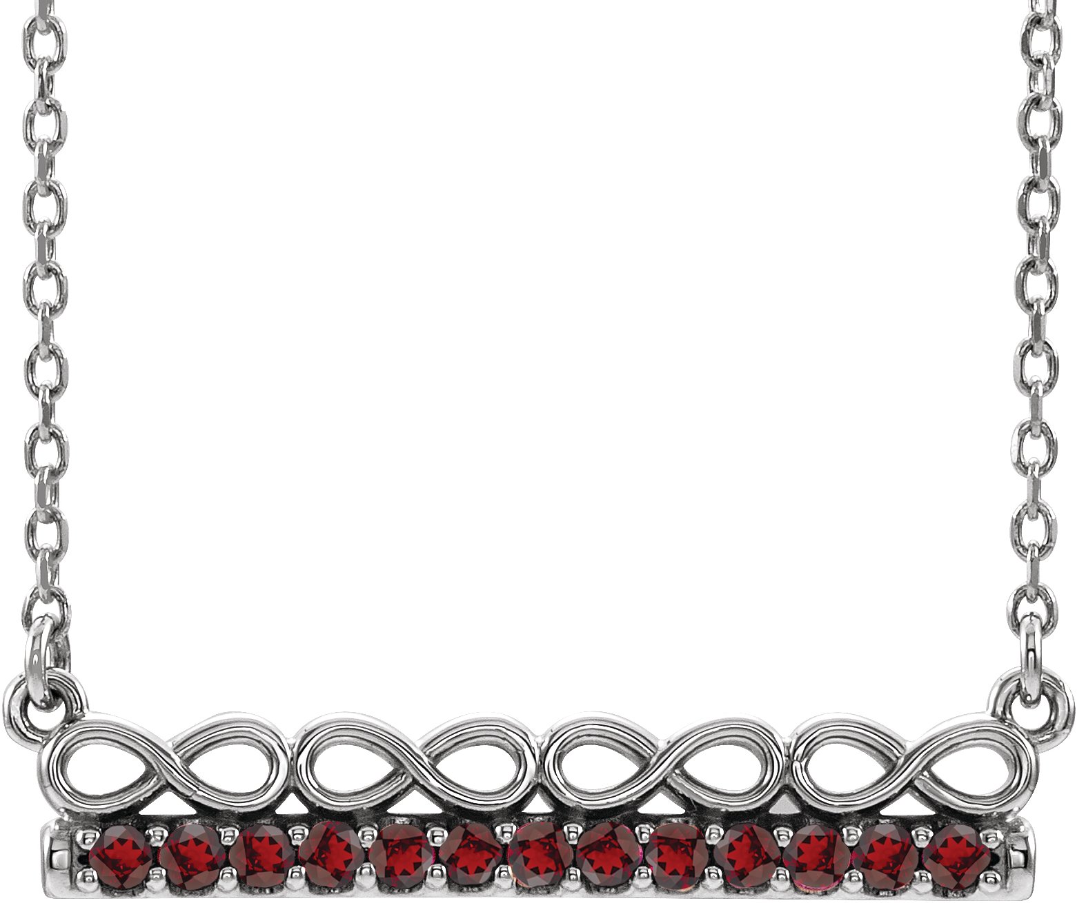14K White Mozambique Garnet Infinity Inspired Bar 16" Necklace Ref. 14800958