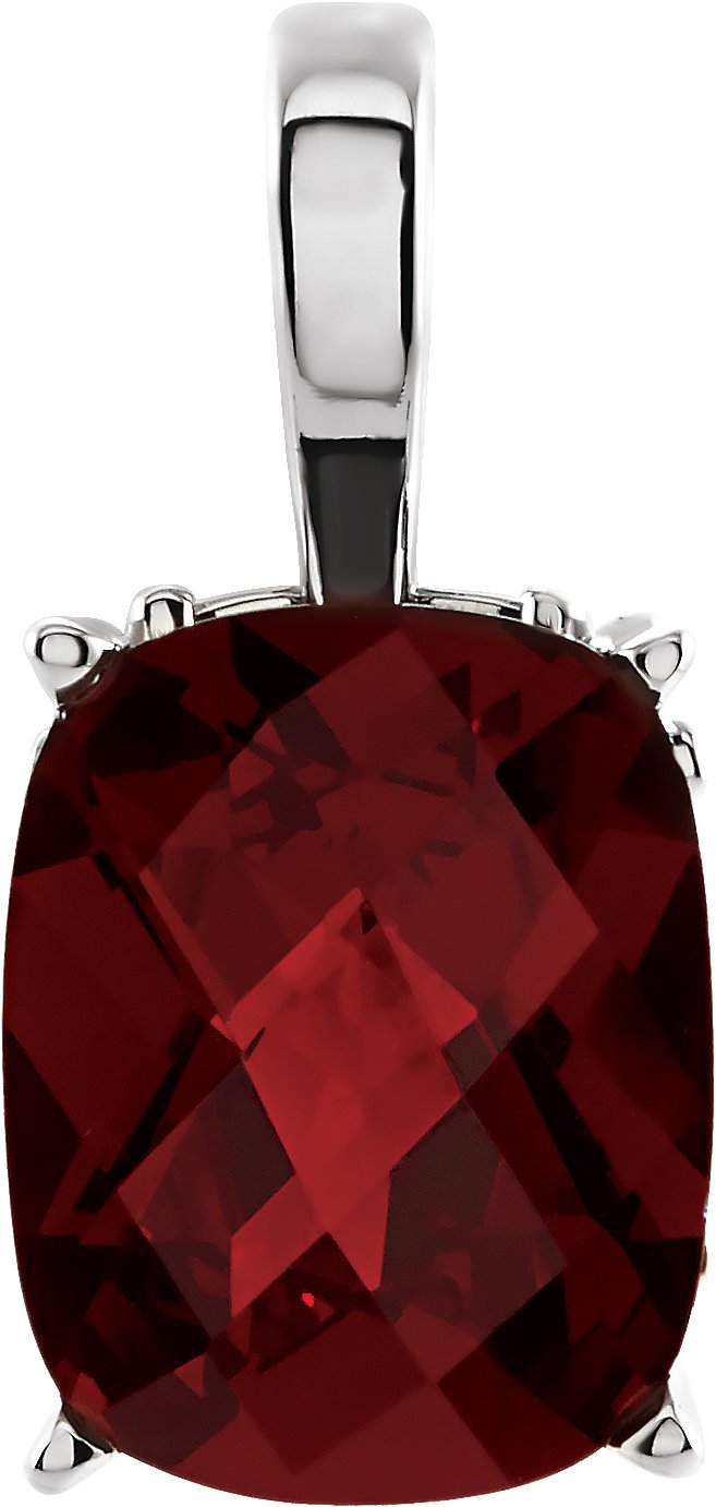 14K White Mozambique Garnet Solitaire Vintage Scroll Pendant