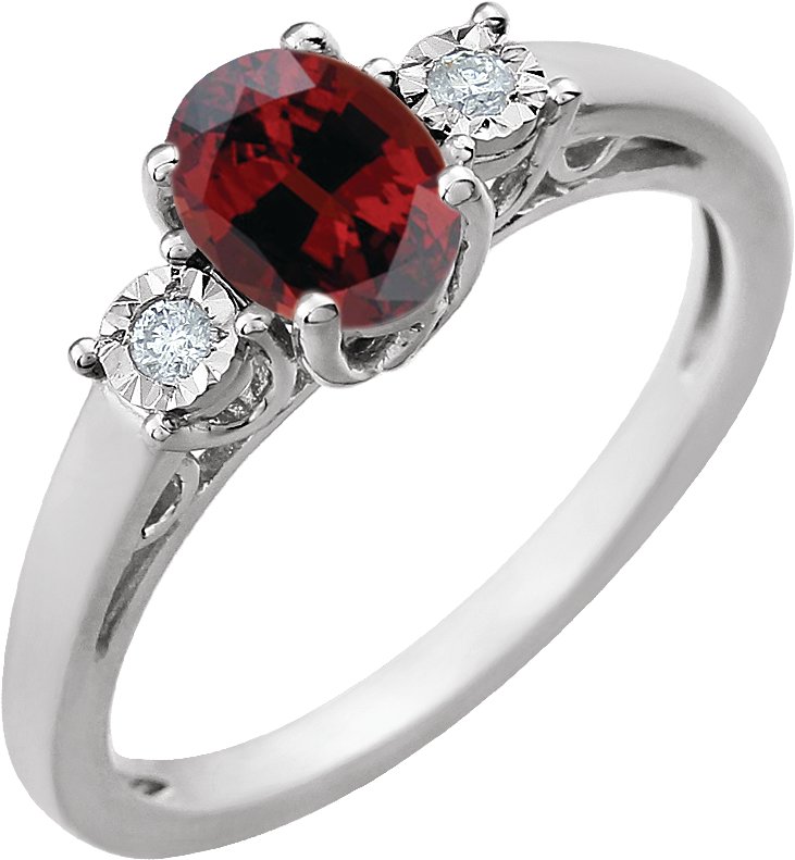 Description: Genuine Mozambique Garnet And .04Ctw Diamond Ring