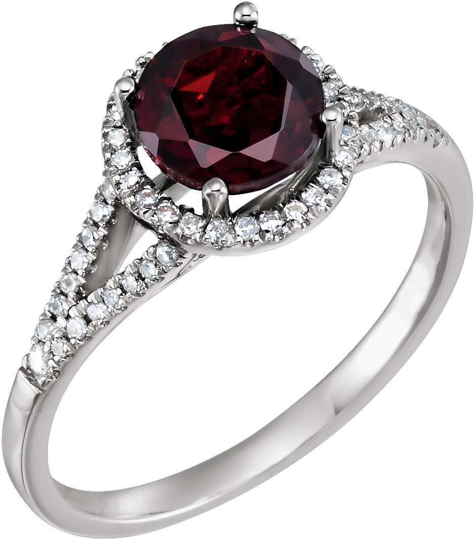 Description: Mozambique Garnet And 1/6 Ctw Birthstone Ring