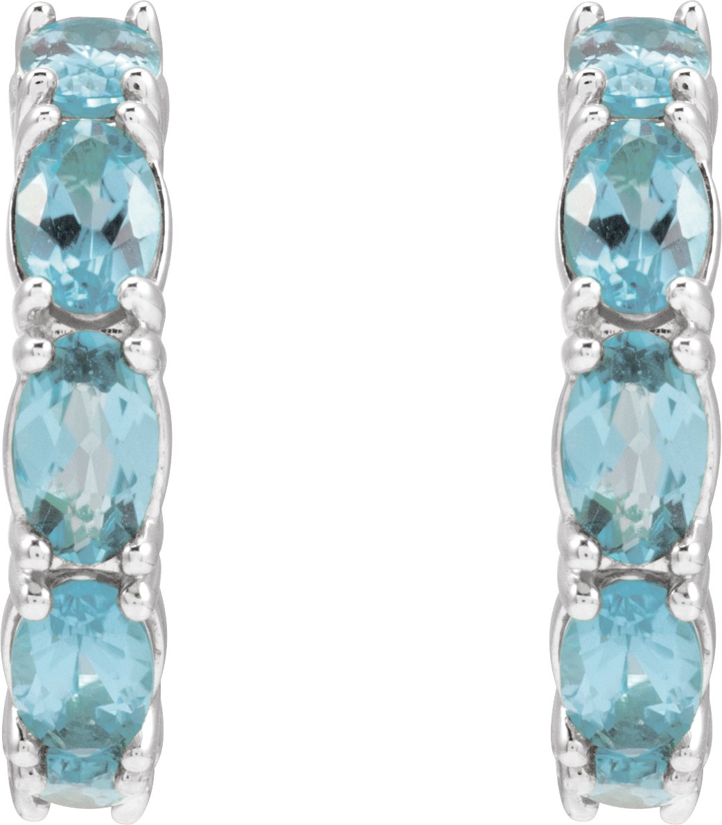 14K White Natural Aquamarine Hoop Earrings
