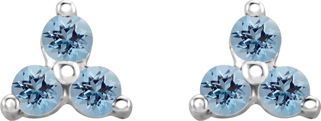 14K White Natural Aquamarine Three Stone Earrings Ref 18414608