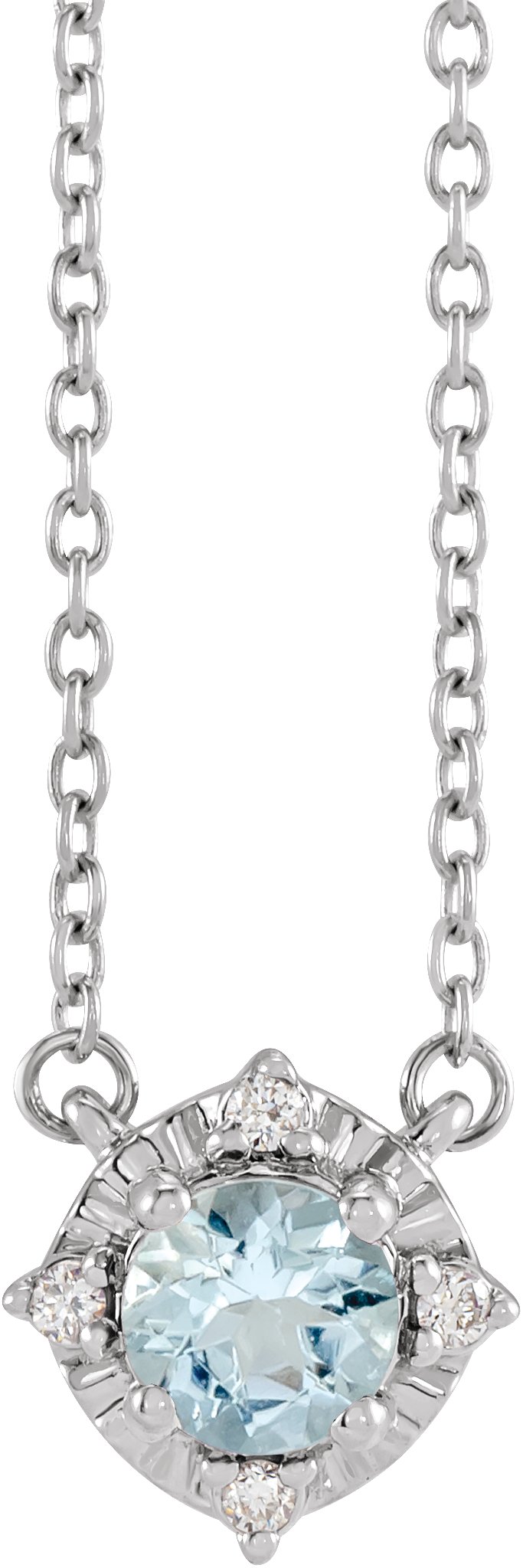 Description: Aquamarine And .04 CTW Natural Diamond Necklace