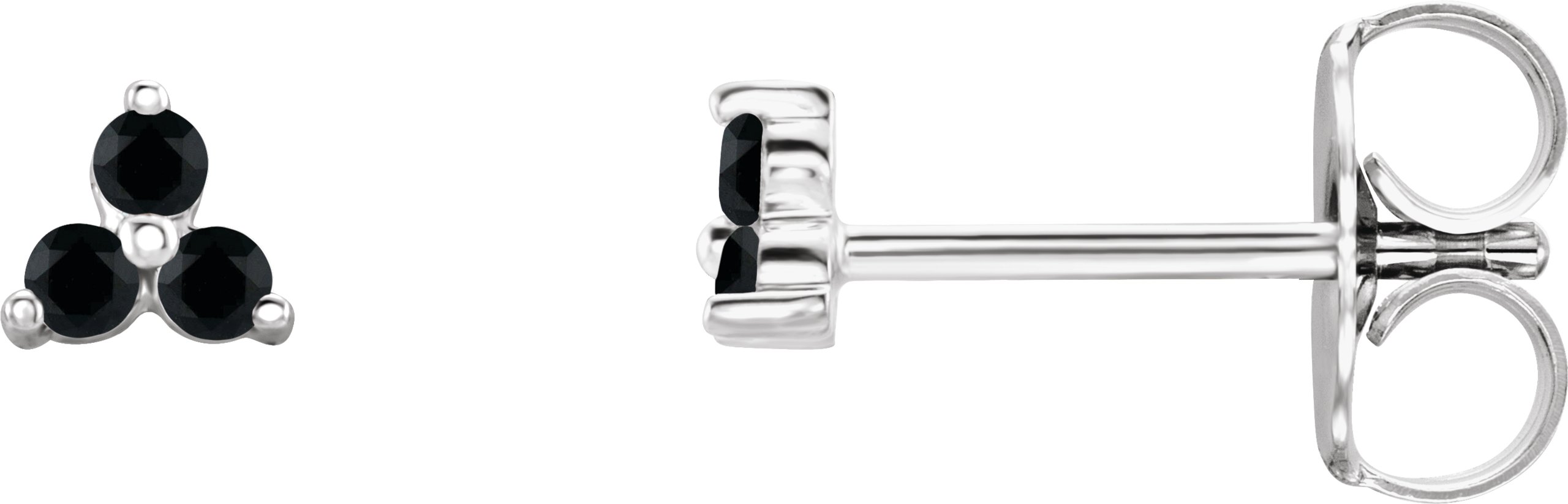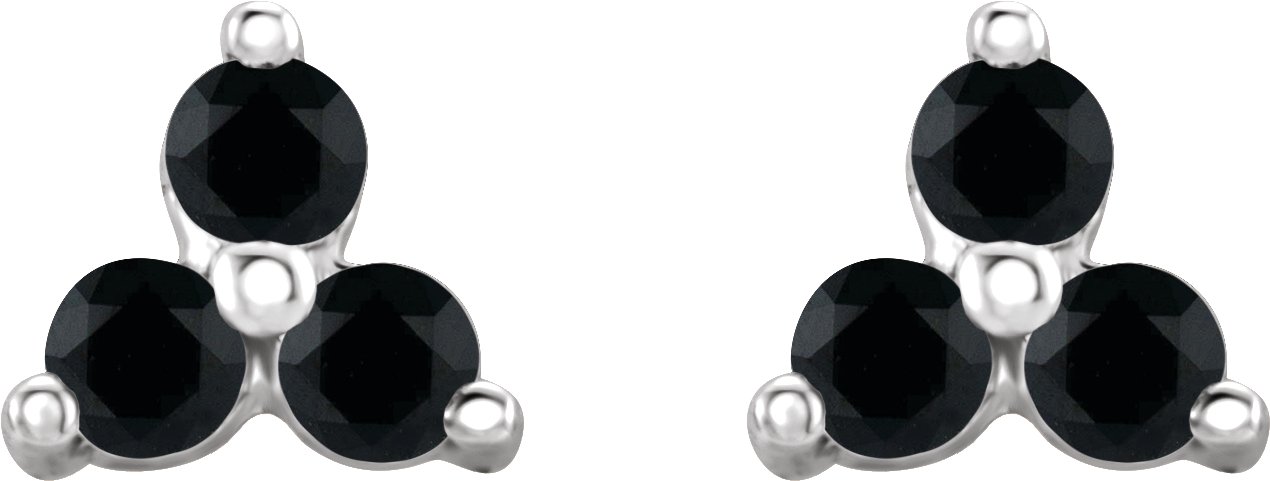 14K White Natural Black Spinel Three Stone Earrings Ref 18414748