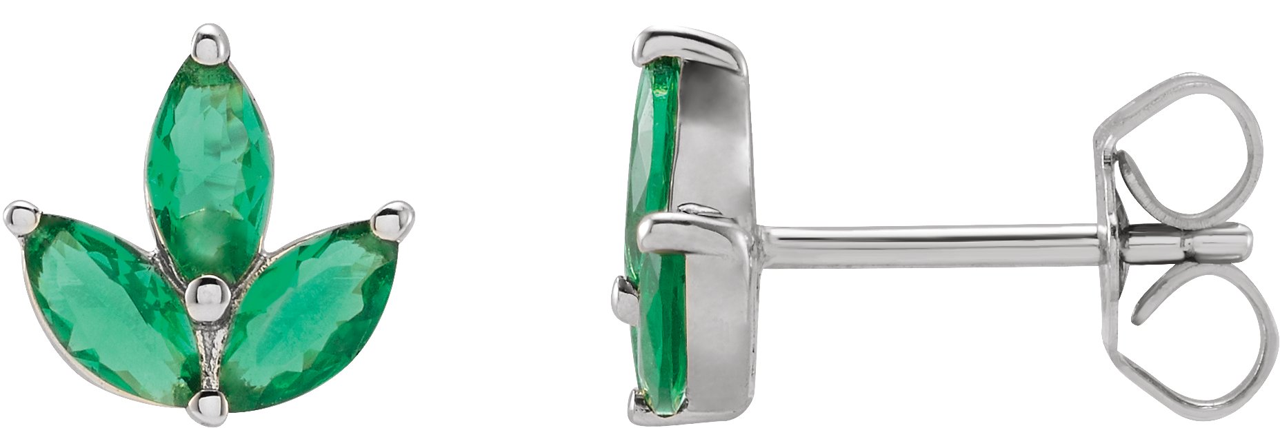 14K White Natural Emerald Cluster Earrings Ref 18620104
