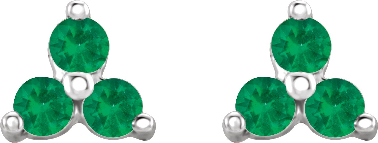 14K White Natural Emerald Three Stone Earrings Ref 18414593