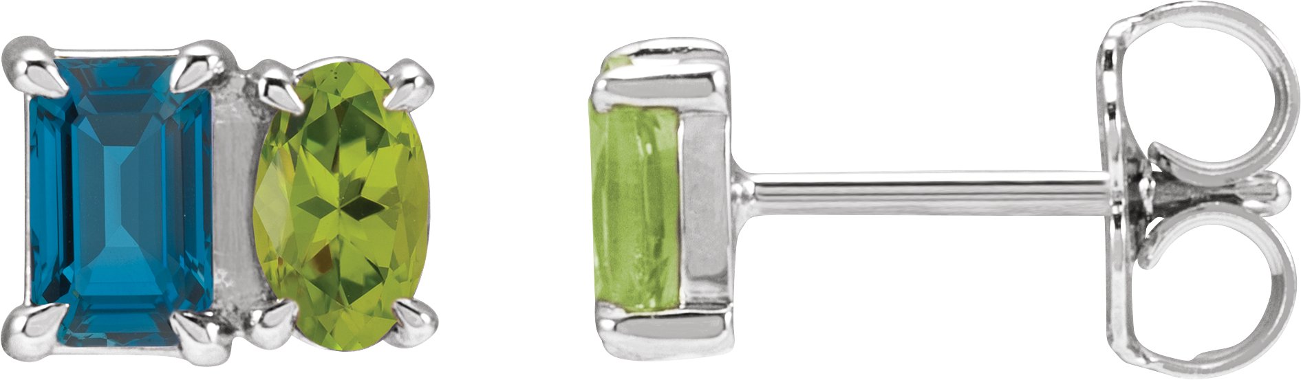 14K White Natural London Blue Topaz & Natural Peridot Two-Stone Stud Earrings