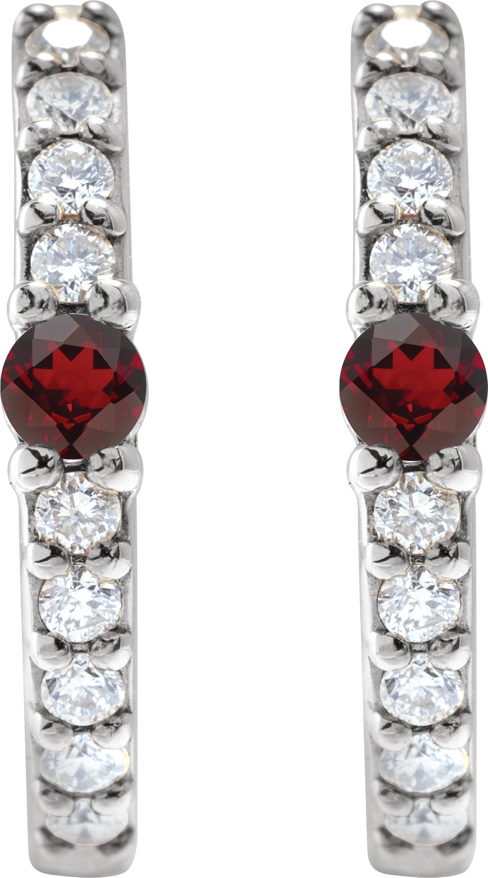 14K White Natural Mozambique Garnet & 1/8 CTW Natural Diamond 13.6 mm Hoop Earring