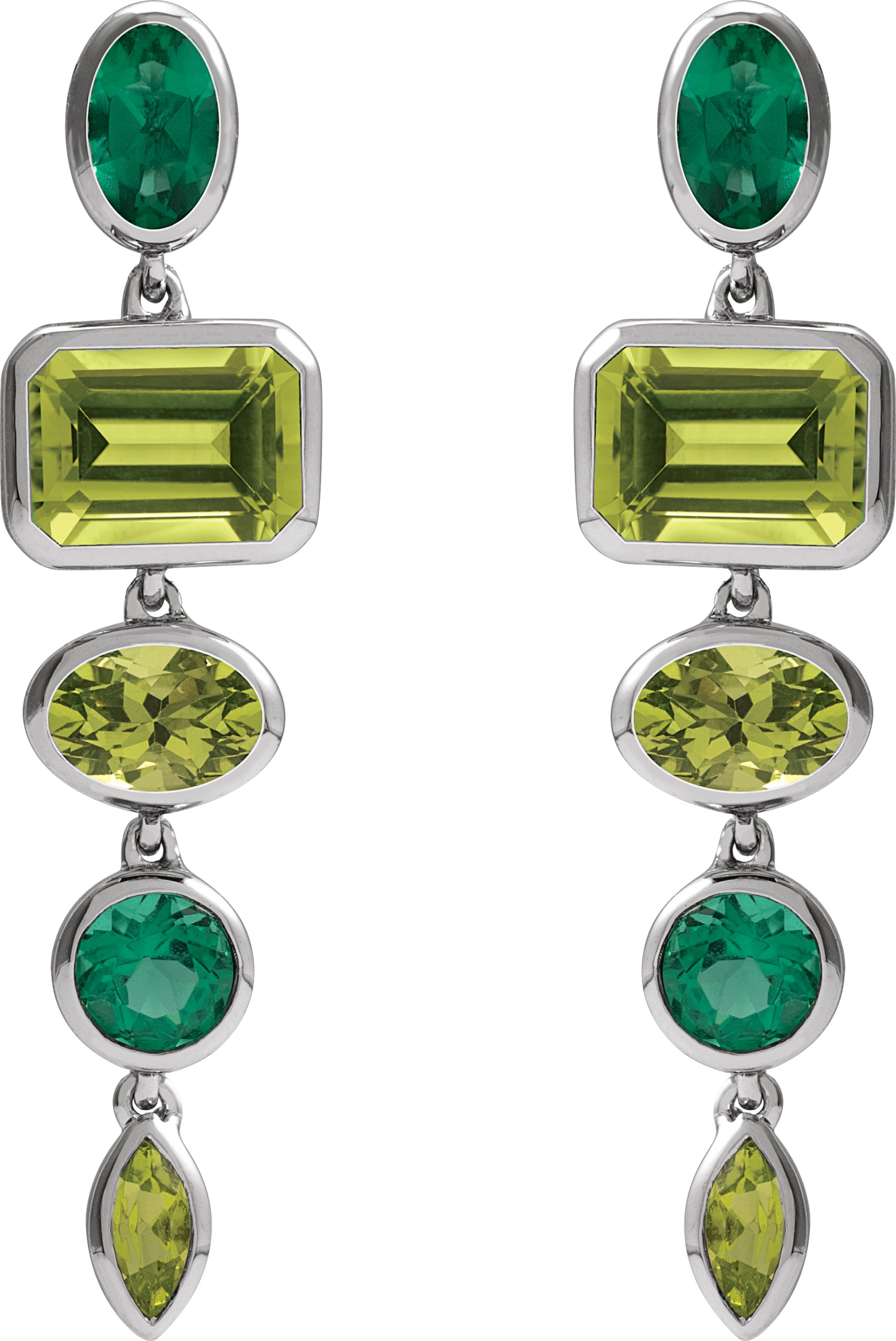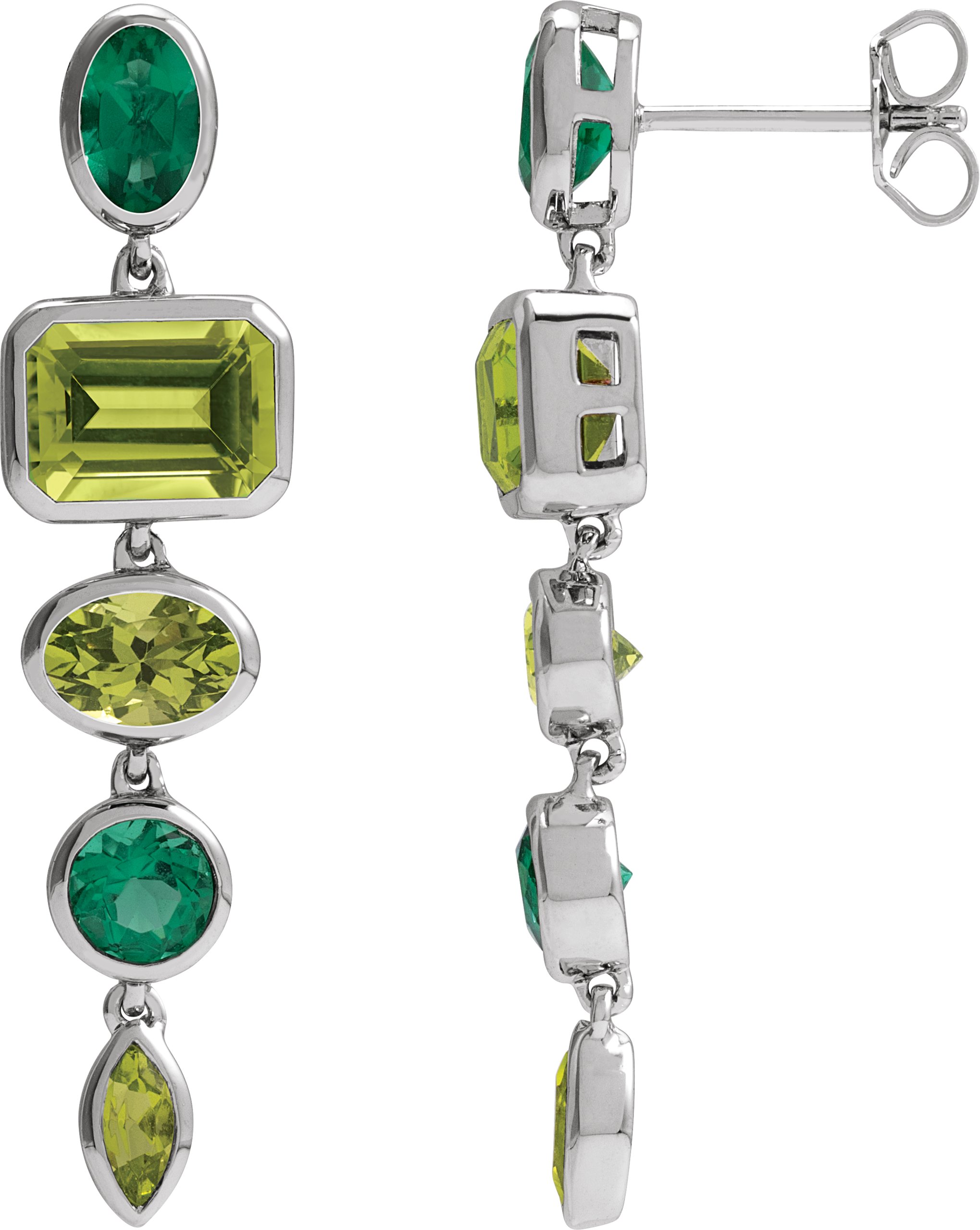 14K White Natural Peridot & Lab-Grown Emerald Dangle Earrings