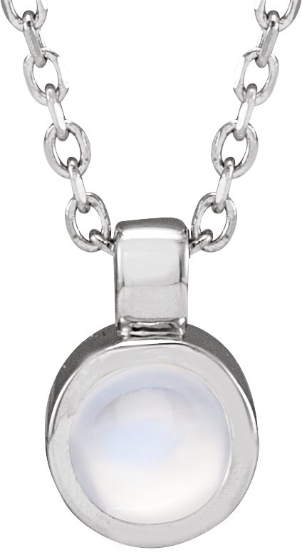 14K White Natural Rainbow Moonstone Bezel-Set 16-18" Necklace