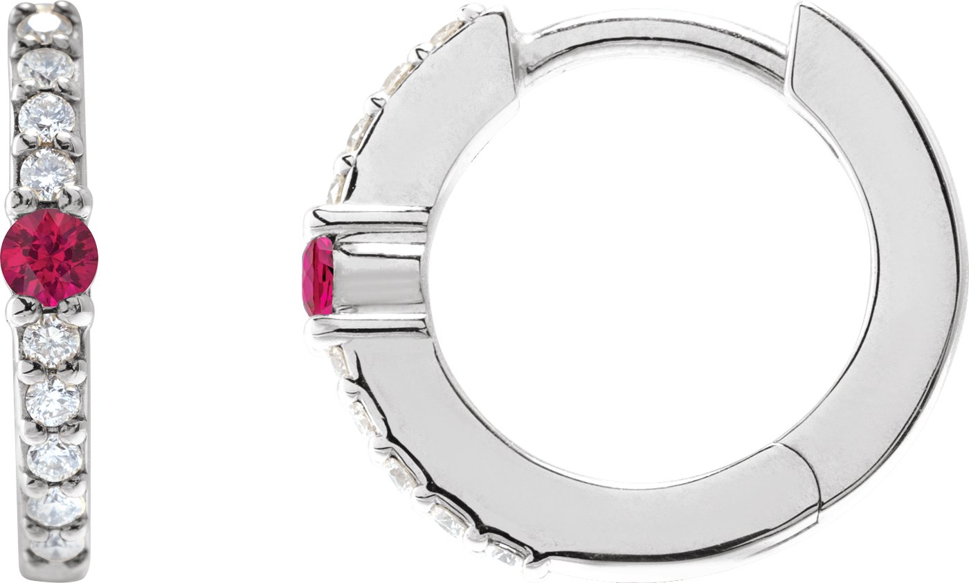 14K White Natural Ruby & 1/8 CTW Natural Diamond 13.6 mm Hoop Earring