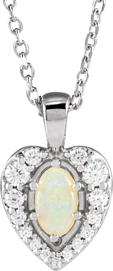 14K White Natural White Opal Cabochon and 0.13 CTW Natural Diamond 16 to 18 inch Necklace Ref 19373899