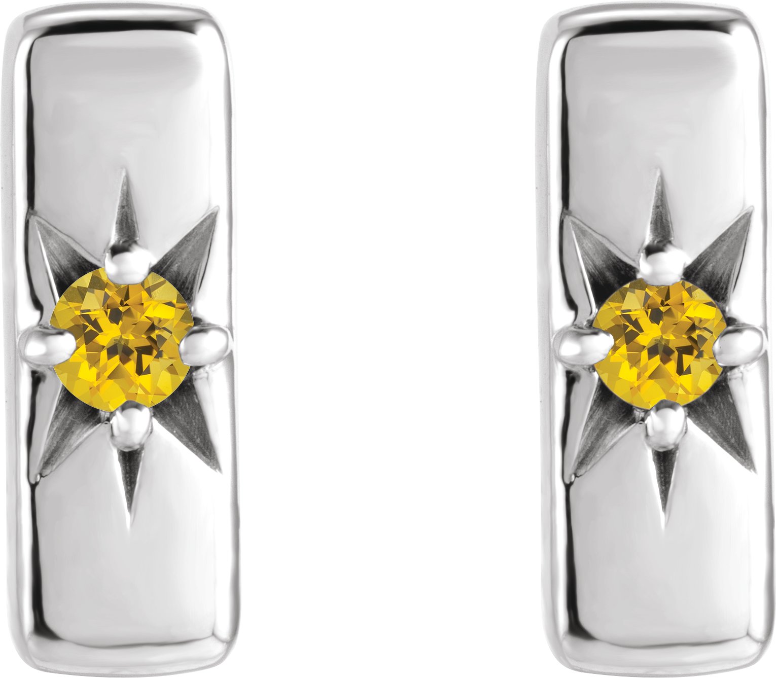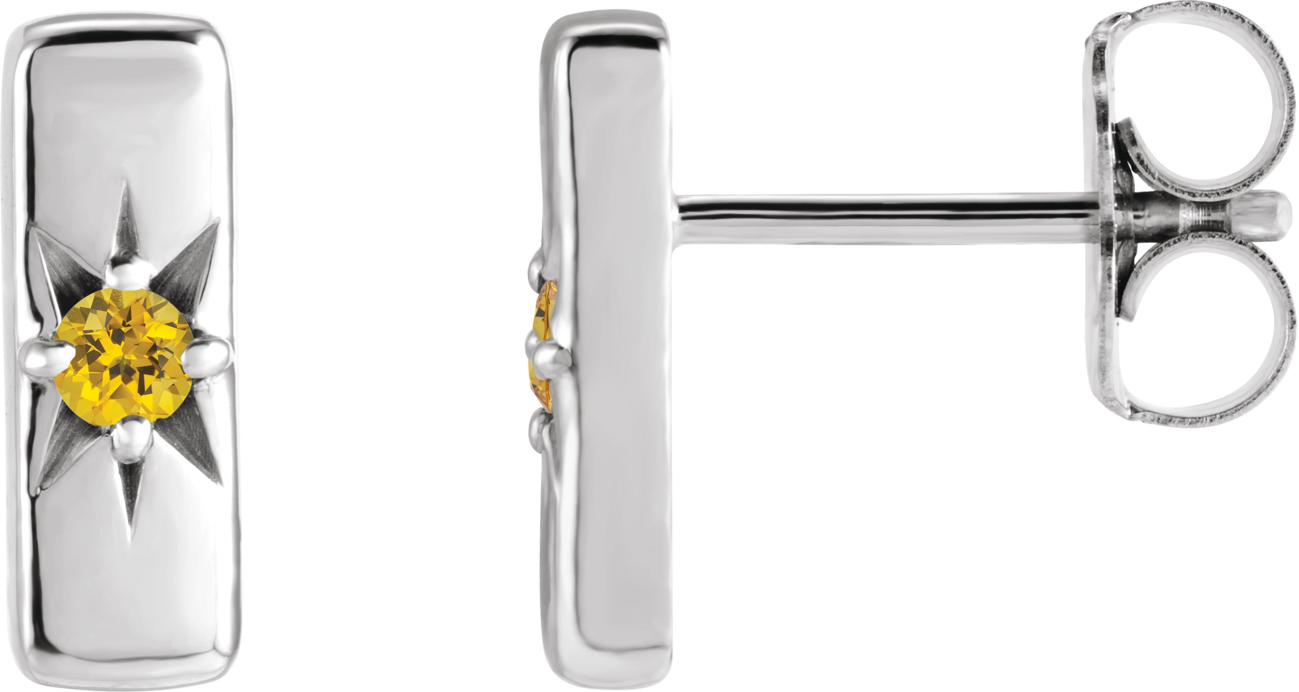 14K White Natural Yellow Sapphire Starburst Bar Earrings Ref 16685646