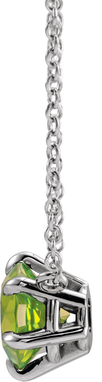 14K White Peridot Solitaire 16 inch Necklace