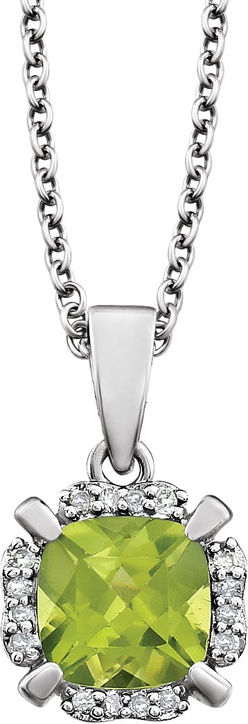 14K White Peridot & .05 CTW Diamond 18 inch Necklace