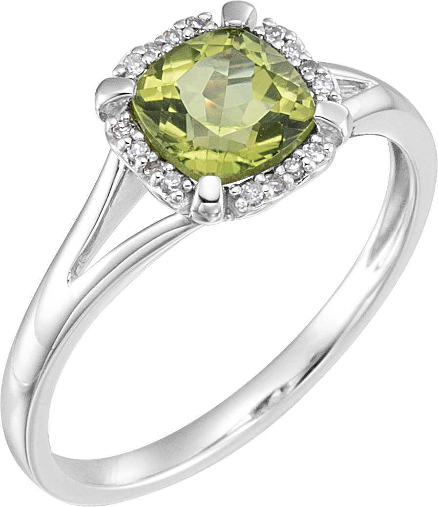 14K White Peridot & .05 CTW Diamond Ring